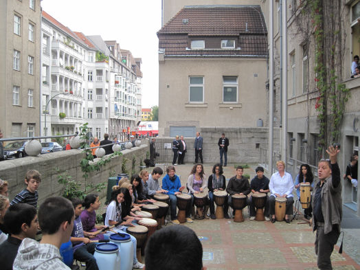 Ohne Rhythmus gäbe es kein Leben. Niemand ist wirklich musikalisch völlig unbegabt. Mit meiner einfühlsamen, lange erprobten und für gut befundenen Methode kann jeder lernen, auf Trommeln Musik zu machen. In Afrika sagt man, wer laufen kann, kann tanzen und wer sprechen kann kann singen. Zu unseren Trommelrhythmen sprechen wir Rhythmussätze, entweder auf Deutsch oder manchmal auf Konnakol, einer sehr alten traditionellen Rhythmussprache aus Indien. Ich kann euch keinen Rhythmus einimpfen, aber ich kann euch den Weg zeigen. Laufen müsst ihr alleine und das ist auch gut so. Und wie so oft, Wiederholung und Übung macht den Meister.